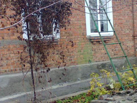 Дом саманный обложенный кирпичом из 4 комнат, отопление форсунка, есть въезд, двор асфальт, во дворе кирпичный флигель с удобствами. Гараж кирпичный. Земельный участок 5 соток в собственности.